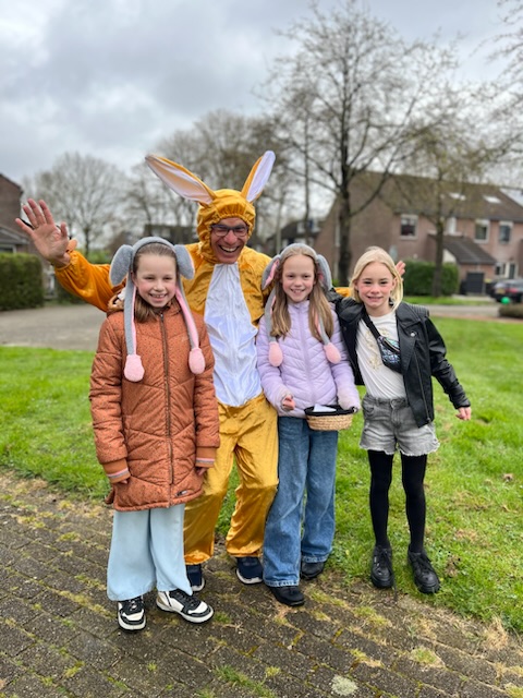 2e Paasdag was het weer zover, de PaasHaas had weer zo’n 300 eitjes verstopt en ruim 30 kinderen van het Fregat, de Klipper en de Zoomwijcklaan in Oud-Beijerland konden naar hartelust zoeken, rennen en plezier maken.Er waren 3 gouden eieren verstopt die voor de ‘vinders’ nog een extra prijsje opleverde.