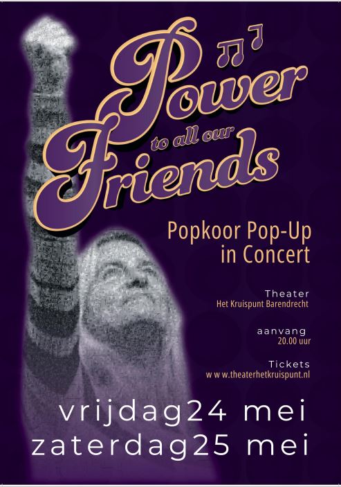 Op 24 en 25 mei 2024 brengt Popkoor Pop-Up uit Oud-Beijerland je een onvergetelijke avond in Theater Het Kruispunt, Barendrecht, met hun betoverende show “Power to all our friends”.