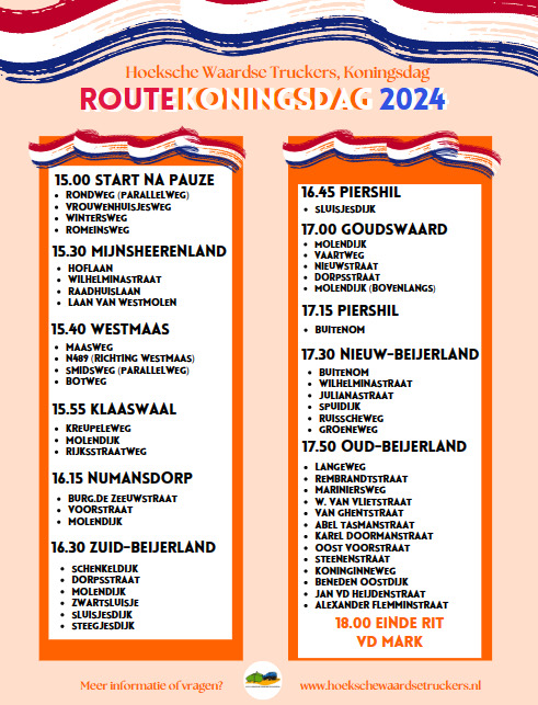 Bekijk hieronder de route van de truckersrit op zaterdag 27 april 2024. Komen jullie zwaaien 👋 ?