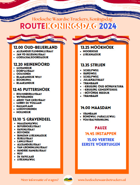 Hoeksche Waard – Op Koningsdag 2024 is weer de jaarlijkse truckersrit. De Stichting Hoeksche Waardse Truckers is er