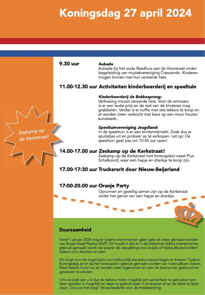 Het programma vaan Koningsdag 2024 in Nieuw-Beijerland is bekend!