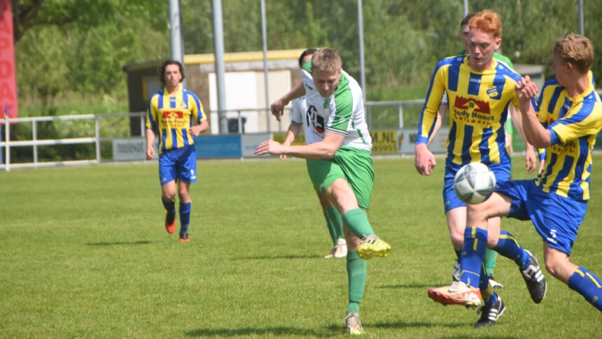 Na zeven minuten was de stand al 1-1 dankzij twee gemakkelijk gegeven strafschoppen. In de 5e minuut scoorde Mike Schellevis vanaf de stip de 1-0. Nauwelijks twee minuten later ging aan de overzijde de bal op de stip na een overtreding van Youri Horseling op de doorgebroken Dylan de Vroed. De toegekende penalty werd benut door topscorer Jacco Vink, die aldus zijn 20ste treffer van seizoen ‘23-’24 liet noteren: 1-1. De formatie van trainer Pascal Hoek had de handen vol aan de fysiek sterke Flakkeese ploeg en had over geluk niet te klagen toen Andrea Bosman oog in oog met doelman Bryan Huijzers de bal tegen de paal mikte.