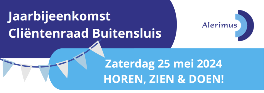 Iedereen is welkom op zaterdag 25 mei in de Buitensluis (Ridderzaal). Mocht u meer informatie willen over de jaarbijeenkomst kan er contact worden opgenomen met Piet de Groot of Elly Vink van cliëntenraad de Buitensluis. Zij zijn bereikbaar via het algemene telefoonnummer van Alerimus: 0186-659659. Aanmelden kan via: [email protected].