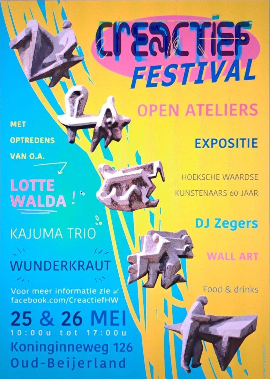 Deze 2 dagen opent het CreActief haar deuren weer voor iedereen en zullen er heel veel leuke dingen te doen zijn voor zowel jong en oud, zoals: diverse Workshops, Kinderactiviteiten, Exposities van interne en externe Kunstenaars, Open Ateliers, Wall Art, Hoeksche Waardse Kunstenaars, live muziek, food en drinks en nog veel meer!