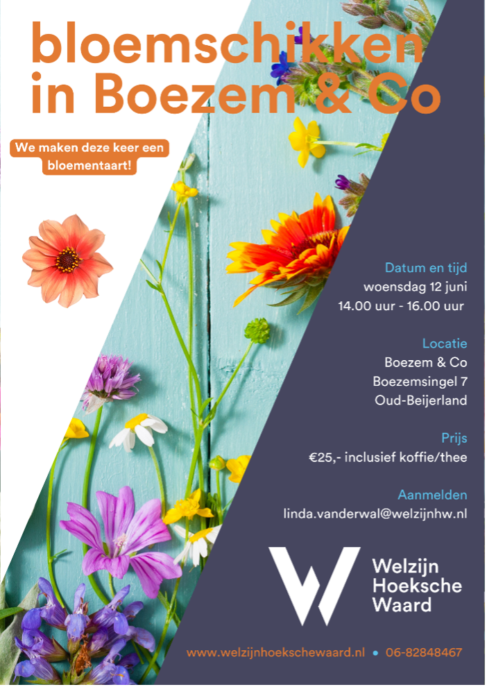 Datum, tijd en plaats: woensdag 12 juni, aanvang 14.00 uur in Boezem & Co, Boezemsingel 7 te Oud-Beijerland. Aanmelden kan via email [email protected] of Whatsapp of telefoon 06-82848467