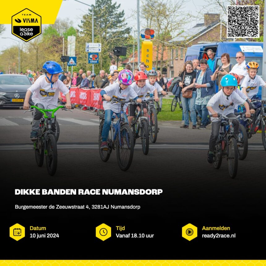 De Ready2Race Dikke Banden Race is een sportstimuleringsprogramma om kinderen op een laagdrempelige manier kennis te laten maken met de wielersport. Het is een initiatief van Team Visma Lease a Bike, het team van Numansdorper Olav Kooij. Olav die in mei een etappe won in de Giro d’Italia is zelf ook begonnen met wielrennen nadat hij meegedaan heeft aan de Dikke Banden Race in Puttershoek.