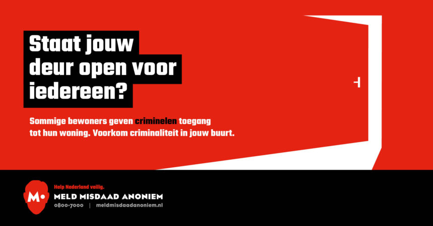 ‘Staat jouw deur open voor iedereen?’ Onder die noemer starten gemeente Hoeksche Waard, woningcorporatie HW Wonen en Meld Misdaad Anoniem (M.) op 29 mei een campagne tegen misstanden in huurwoningen. De woningen worden soms misbruikt door criminelen om wapens en cash op te slaan, te dealen, drugs te versnijden of voor illegale prostitutie. Ze krijgen toegang doordat bewoners een kamer of ruimte afstaan. De campagne vergroot het bewustzijn van huurders, brengt signalen onder de aandacht en verlaagt de drempel om te melden.
