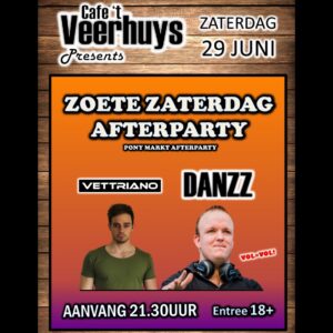 Zoete Zaterdag vindt plaats op 29 juni. We doen niet aan haasten, geniet zolang je wilt! De braderie en de kinderattracties zijn tussen 10.00 en 16.00 uur. Daarna gaat het los op de terrassen van o.a. BB Kitchen, ByBabette,Café ’t Centrum en Café ‘t Veerhuys tot in de kleine uurtjes.