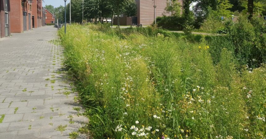 Een andere belangrijke reden is dat de gemeente sinds dit jaar op veel plekken minder en anders maait dan vroeger. Dit doen we om planten en dieren te helpen. We versterken zo de biodiversiteit (al het leven samen). Daardoor verandert het beeld van het openbaar groen zoals we dat gewend zijn. Het gras staat hoger en er groeien planten die wij vaak zien als onkruid, maar die nuttig zijn voor vlinders, bijen en andere diertjes. Hoe snel en op welke manier de natuur verandert en hoe het er precies uit gaat zien, weten we nog niet. We houden dit goed in de gaten. We sturen alleen bij als het gevaarlijk wordt voor bijvoorbeeld het verkeer, denk aan slecht (over)zicht op kruisingen. We maaien dus langs wegen, fiets- en voetpaden een strook kort. Ook houden we rekening met plekken die zijn bedoeld om te spelen. Kijk voor meer informatie op de GeWild Groen pagina op onze website.