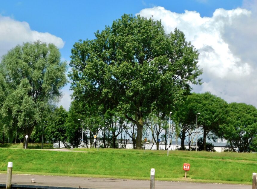 Eiken en beuken horen ook bij die groep boomsoorten die dagelijks rond de 200-250 liter water opnemen. Maar volwassen notenbomen gaan daar in het groeiseizoen nog overheen met tussen de 250-400 liter aan wateropname. Wie komt er in ons land dan in aamerking voor de titel van kampioen wat betreft de wateropname per dag? Zeer waarschijnlijk komen we dan uit bij oude bekenden. De treurwilg en de zwarte populier. Daarbij moeten we aantekenen dat de Canadese populieren, mist ze oud genoeg kunnen en mogen worden ongeveer gelijk opgaan met de oorspronkelijke zwarte variant. Een groot formaat volwassen, zwarte populier kan soms wel tot bijna 1500 liter water tot zich nemen per dag. En inderdaad, dat is een hele slok op een borrel, om er maar even een oud gezegde bij te halen. Het is glashelder dat de aanwezigheid van zulke bomen langs wegen, in bosplantsoenen, parken en ook in bossen tijdens perioden met veel of extreme regenval een verschil kunnen maken. Wilgen en ook populieren zijn van oorsprong ook bomen die gewend zijn aan (op)groeien in een waterrijke omgeving. Die ‘rijen ondenkbaar ijle populieren’, uit het bekende gedicht (‘Herinnering aan Holland’) van Marsman zijn dus niet alleen ethetisch en landschappelijk waardevol.
