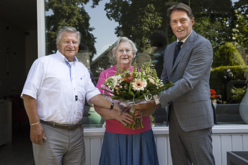 Het was vandaag 60 jaar geleden dat meneer J.A. de Kort (82) en mevrouw J.A.M. de Kort-Siermans (80) uit Strijen elkaar het jawoord gaven. Wethouder Paul Boogaard ging vanochtend langs met een mooie bos bloemen. Hij feliciteerde hen namens het gemeentebestuur met dit diamanten jubileum.