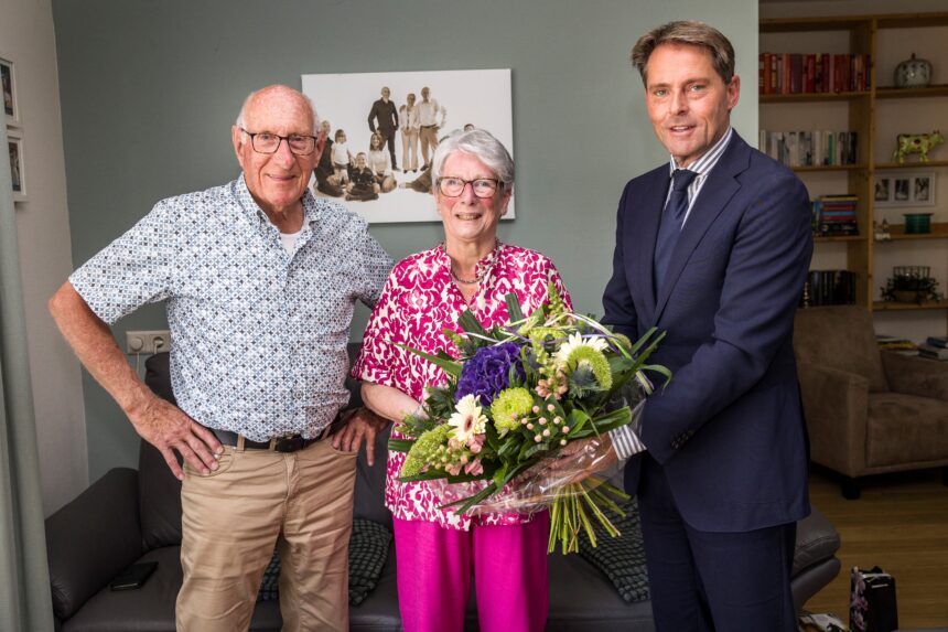 langs met een mooie bos bloemen. Hij feliciteerde hen namens het gemeentebestuur met dit