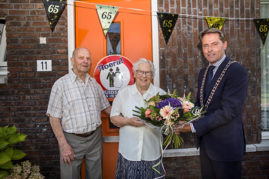 Merwe (86) uit Strijen in het huwelijksbootje stapten. Locoburgemeester Paul Boogaard ging vanochtend langs met een mooie bos bloemen. Hij feliciteerde hen namens het gemeentebestuur met dit diamanten jubileum.