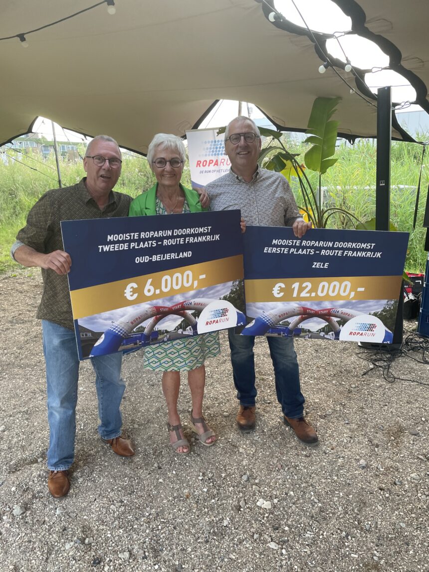 Donderdag 1 augustus heeft Stichting Roparun de winnaars bekend gemaakt van de mooiste doorkomsten van de Roparun 2024. Ook de doorkomst van het dorp Oud-Beijerland was genomineerd om in de prijzen te vallen voor de route uit Frankrijk. Aan het einde van de bijeenkomst mocht Oud-Beijerland de 2e prijs in ontvangst nemen, een bedrag van € 6.000,– te besteden aan een door de Roparun goedgekeurd goed doel.