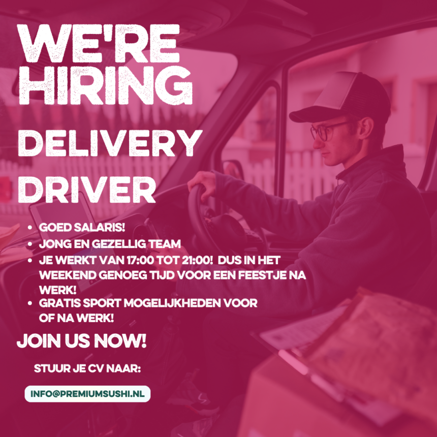 Ben je 16 jaar of ouder en op zoek naar een bijbaan in de vakantie? Kom werken als bezorger bij Premium Sushi!
