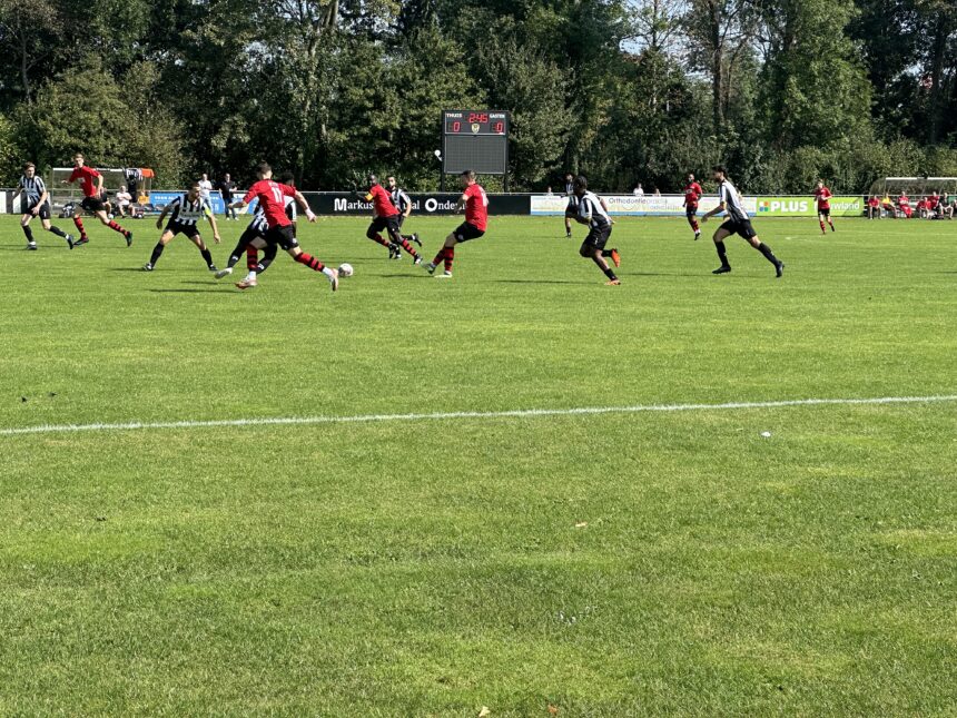 Het begin van deze pot was duidelijk voor de thuisploeg en SSS liep in het eerste halfuur achter de tegenstander aan. Dat resulteerde in de 21e minuut ook in een achterstand van 1-0. Na een lastig half uur kwam SSS meer in de wedstrijd en was het meer op de helft van de Schiedammers te vinden. Het combinatiespel werd beter en zo kwam SSS steeds dichter bij de goal van de thuisploeg. Nadat Dennis den Haan in de 26e minuut een vrije trap net buiten het 16 meter gebied in de handen van de keeper schoot, was het in de 29e minuut wel raak. Een soepel lopende aanval via Tim van Zetten die Feni Bileti in de loop aanspeelde werd de voorzet van Bileti door Dennis den Haan vanaf randje 16 meter op koelbloedige wijze met zijn linker afgerond, 1-1. Helaas was deze vreugde van korte duur, want net voor rust maakt Excelsior’20 er 2-1 van door uit een lange bal van achteruit een vrije doortocht te krijgen op SSS keeper Ti-Jey Bins. Net daarvoor scheerde een vrije trap van Excelsior’20 over de kruising van het SSS doel.