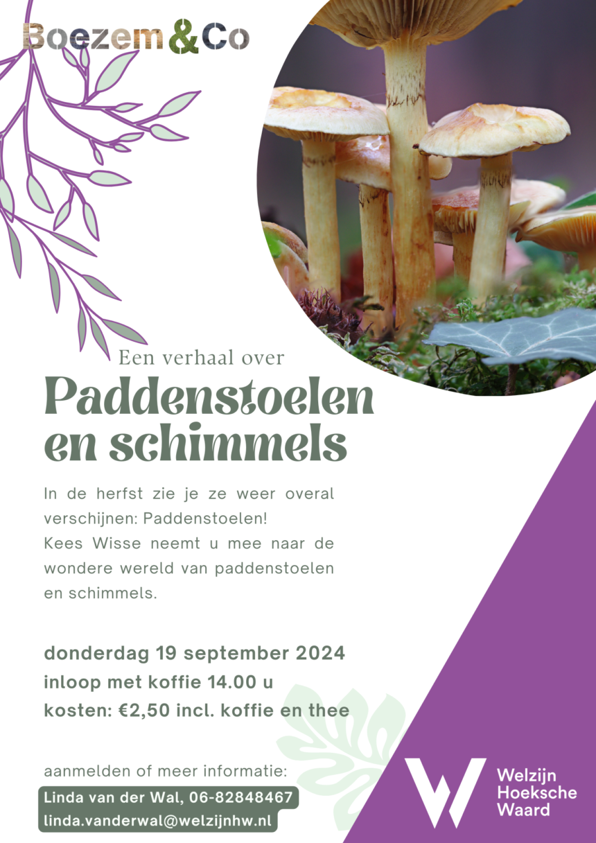 In de herfst ziet u ze weer verschijnen, in de plantsoenen en in de bossen, paddenstoelen! 19 september neemt Kees Wisse u mee in de magische wereld van paddenstoelen en schimmels, want daar valt heel wat over te vertellen.