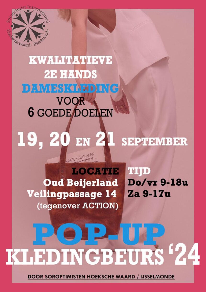 Vorig jaar wist de serviceclub Soroptimisten Hoeksche Waard/IJsselmonde met hun jaarlijkse pop-up kledingbeurseen recordbedrag van meer dan 20 duizend euro voor goede doelen op te halen. De club is een lokale afdeling van de internationale Soroptimisten die zich wereldwijd inzetten om de rechten, de positie en het leven van vrouwen en kinderen te verbeteren. Dit doen zij naast hun vaak al drukke baan. Zo tref je als kledingverkoopsters bij de beurs bijvoorbeeld een rechter, tandarts, kinderarts of boerin.