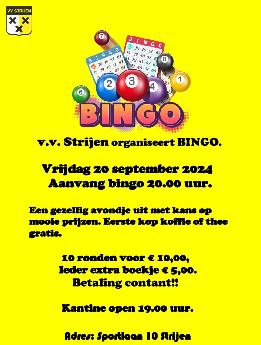 Strijen – Voetbalvereniging Strijen organiseert op vrijdag 20 september 2024 een gezellige bingoavond. De bingo begint om 20:00 uur en vindt plaats aan de Sportlaan 10 in Strijen. De kantine gaat open om 19:00 uur.