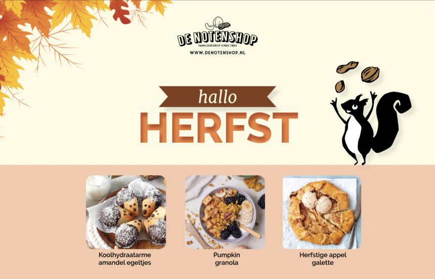 Zin om zelf aan de slag te gaan? De Notenshop heeft ook een blogpagina met heerlijke (herfst) recepten. Populair zijn bijvoorbeeld de koolhydraatarme amandel egeltjes, de pumpkin granola of de herfstige appel galette. Neem een kijkje op het blog van De Notenshop en kies een lekker recept uit!