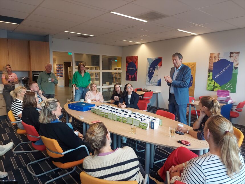 Ad Keller (bestuurder De Hoeksche School) en Cora Labree (directeur-bestuurder De Hoeksche School Kinderopvang) overhandigden de taarten persoonlijk op IKC De Klinker en het Actief College. “We waarderen de inzet, betrokkenheid en kundigheid van alle collega’s enorm”, zegt Ad Keller. “Wij zijn ontzettend trots op de manier waarop we binnen De Hoeksche School met elkaar samenwerken aan de ontwikkeling van de kinderen.”