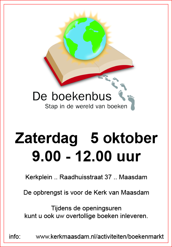 Maasdam – Op zaterdag 5 oktober 2024 van 9.00 tot 12.00 uur staat de Boekenbus weer op het kerkplein, aan de Raadhuisstraat 37 in Maasdam. Met de Kinderboekenweek in volle gang, is dit het perfecte moment om voordelig jeugdboeken, kinderboeken en prentenboeken in te slaan. Natuurlijk zijn er ook veel andere genres te vinden, allemaal tegen aantrekkelijke prijzen. De opbrengst van de boekenmarkt gaat volledig naar de kerk van Maasdam.