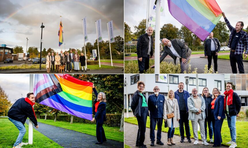 Wethouder Huibert Steen hees vanmorgen samen met Jan Derksen-Wynn (namens werkgroep Regenbooggemeente HW) de Regenboogvlag bij het gemeentehuis in Oud-Beijerland. Wethouder Miranda den Tuinder deed dat samen met Jelle Blinde (namens LHBTI+ Belangenvereniging HW) bij het gemeentehuis in Maasdam. Een symbool van inclusiviteit en diversiteit.