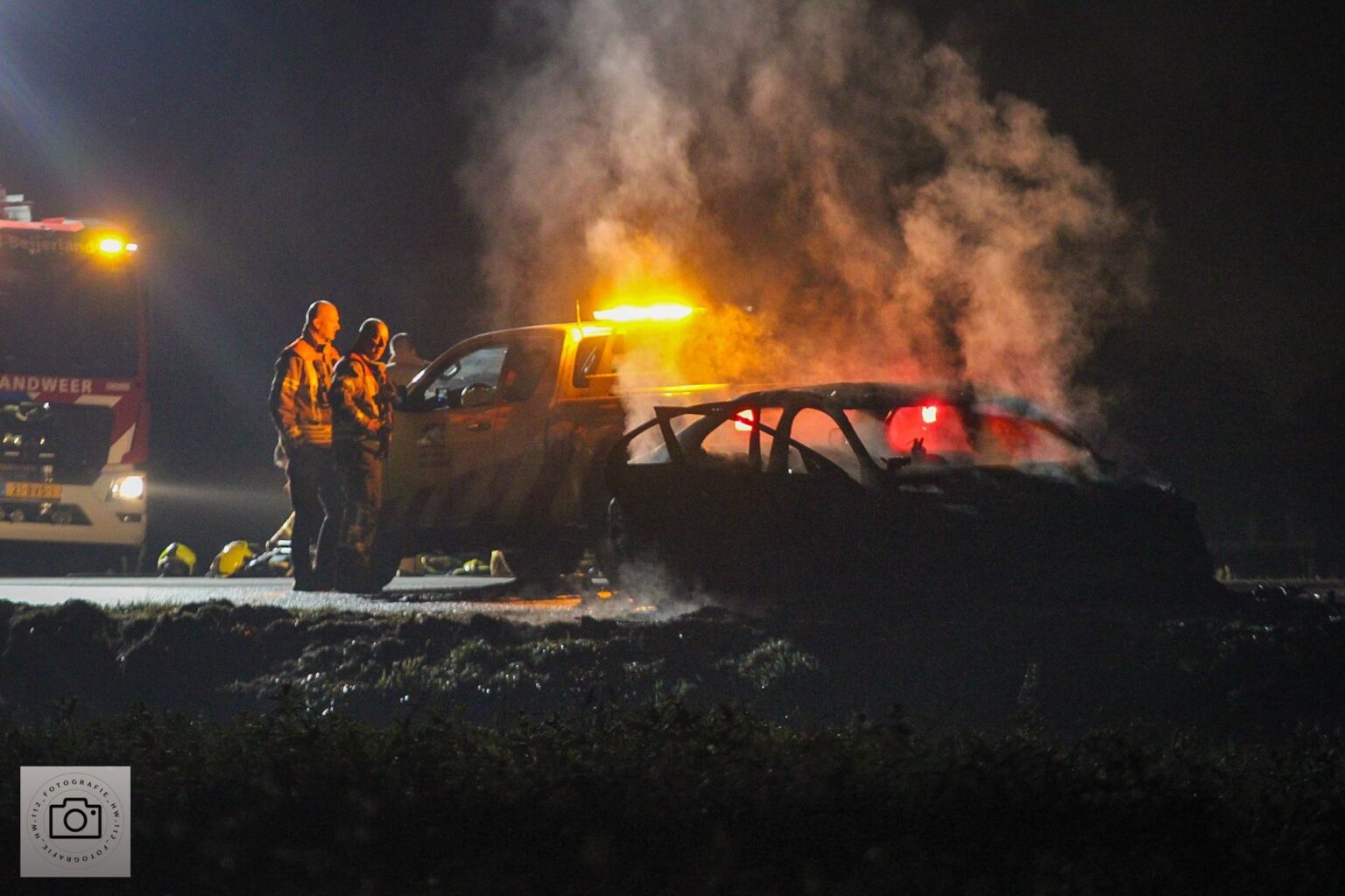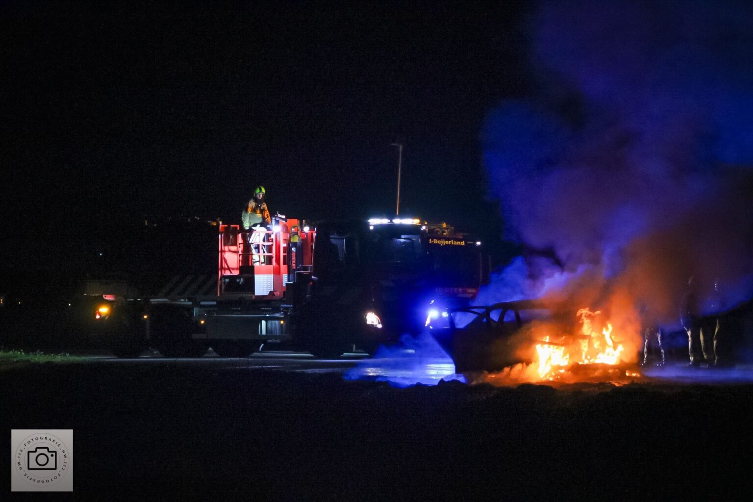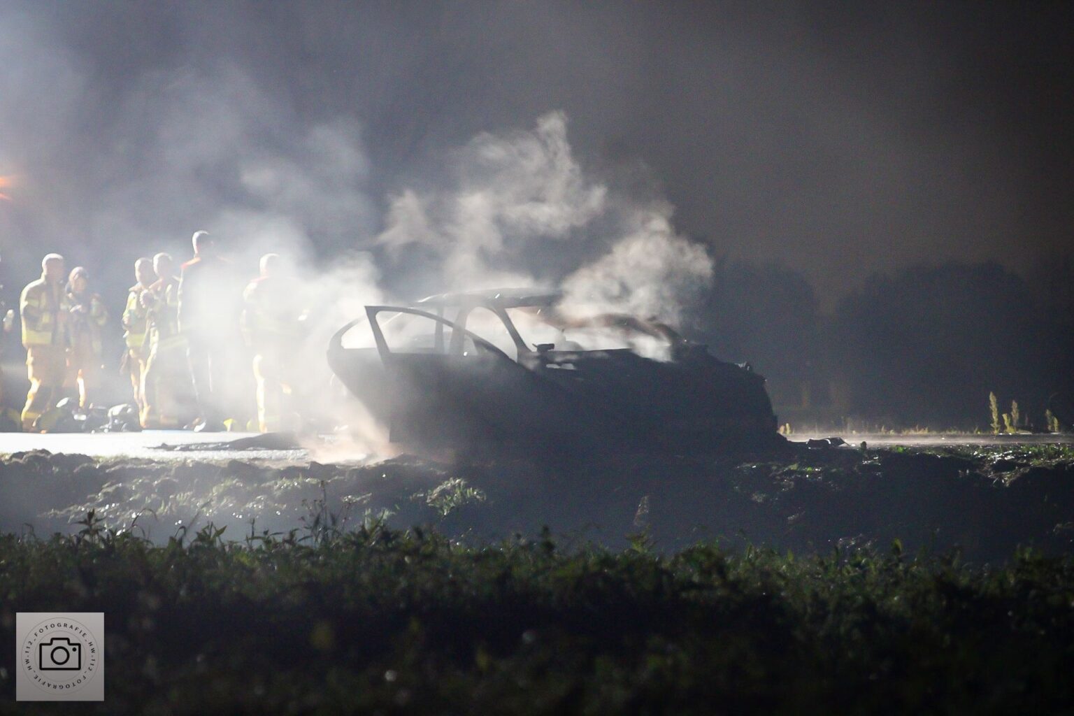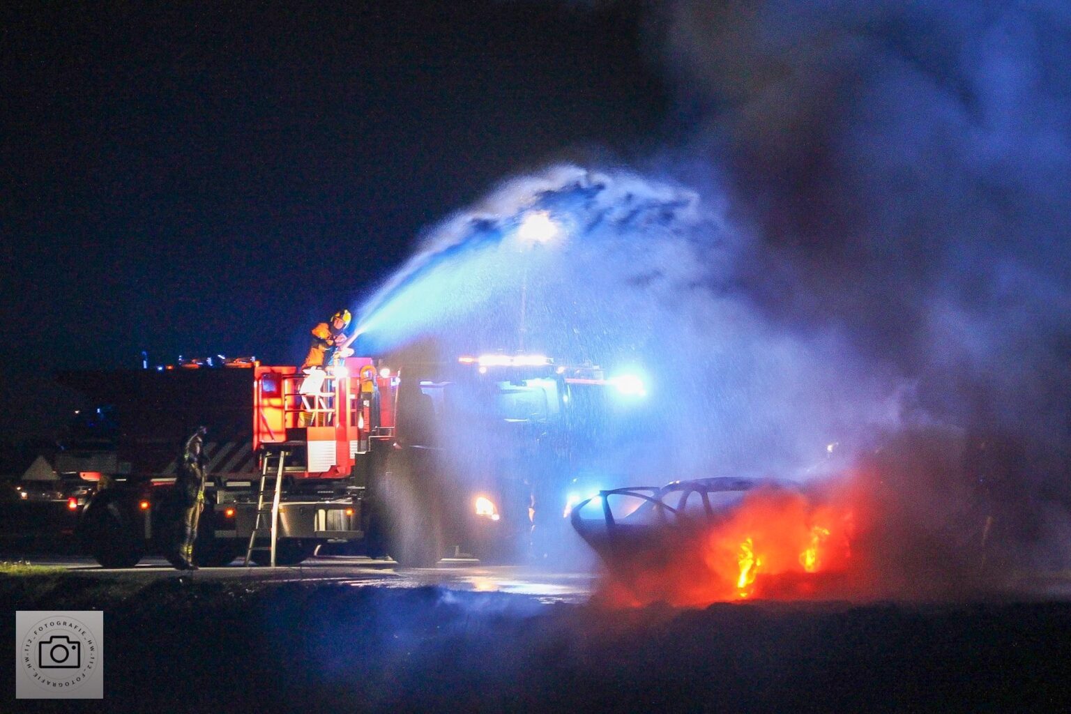 De brandweer kon niet voorkomen dat de auto volledig uitbrandde. Het voertuig is later op de avond weg getakeld. De brand was in de omgeving goed zichtbaar en er waren diverse knallen hoorbaar.