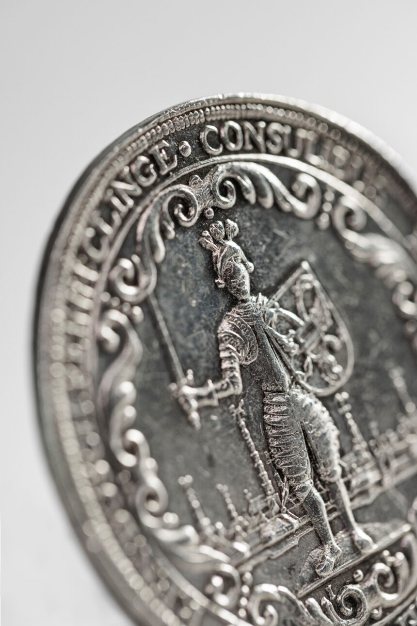 Een ander kavel met historische waarde is de zeventiende eeuwse penning uit Groningen. Deze werd uitgegeven ter ere van de honderdste verjaardag van de verovering van de stad Groningen op de Spanjaarden door prins Maurits in 1594. De uitgifte van deze penning op initiatief van stadhouder Hendrik Casimir van Nassau-Dietz had op het eerste gezicht een feestelijk karakter, maar vaak speelden er diepere politieke motieven. Het herdenken van opstanden uit het verleden was een effectieve manier om gevoel van verbondenheid tussen de mensen te creëren. Geen overbodige luxe in de nog roerige tijden van de Republiek.