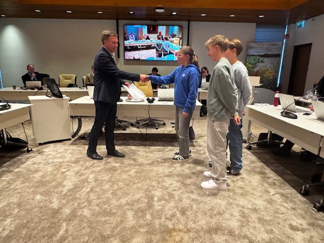 Vanavond heeft Josje van Tongeren, samen met haar klasgenoten Mats Holterman en Moos Vriens van het Actief College de door haar opgezette petitie officieel aangeboden tijdens de gemeenteraadsvergadering van de Gemeente Hoeksche Waard.