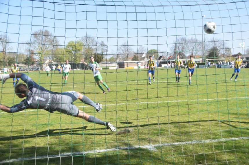 In de beginfase profiteerde namens de bezoekers Joost van Wezel tot tweemaal toe bijna van de defensieve chaos, maar doelman Bryan Huijzers redde bekwaam. Na tien minuten verwerkte de Flakkee- defensie een verre inworp van Rick Wijnbeek matig en profiteerde Jacco Vink: 1-0. Kort daarop ging Thomas Gennissen over de knie bij Flakkee- verdediger Sico Wielaard en legde de uitstekend leidende scheidsrechter Oulad Ali L Hadj de bal op de stip. Sander van der Giesen benutte deze kalktrap evenals vorige week met overtuiging: 2-0. De ploeg van trainer Pascal van den Hoek kreeg tot de rust nog een groot aantal mogelijkheden, maar daarvan werd er slechts één benut. In de 43ste minuut zag Mark van Gilst bij een vrije trap nét over de middenlijn keeper Dennis Breen iets te ver voor zijn doel staan en liet de bal vlak onder de lat in het doel verdwijnen: 3-0.