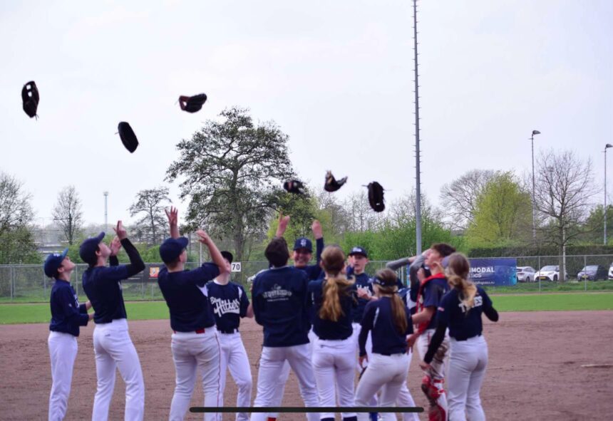 Het team liet direct zien dat het samenspel al mooi begint te rijpen. Vooral het duo Jorit en Duuk op positie 2 viel op. Hun samenwerking was soepel en doordacht, met als hoogtepunt een prachtig moment waarop Jorit, na een doorgeschoten bal, verrassend op honk 3 belandde – een ware sensatie die het publiek op het puntje van de bank bracht.