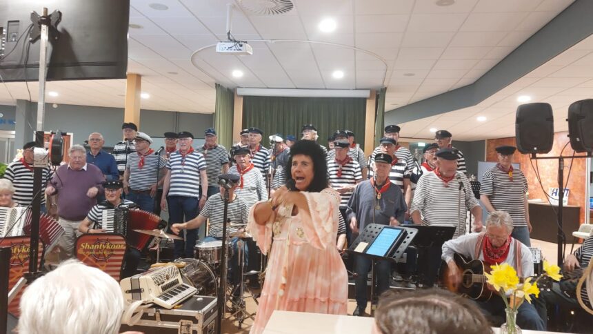 OUD-BEIJERLAND – Dinsdagavond 15 april zorgde Shantykoor De Hoeksche Waard weer voor een vrolijke avond in verzorgingshuis Alerimus de Open Waard. Onder leiding van stuurvrouw Paula van Wanrooy werd het Wijckplein omgetoverd tot een paassfeertje, compleet met paashaas en diademen met bewegende oren.