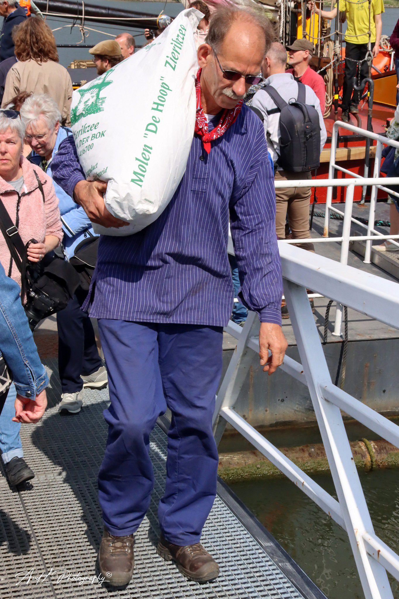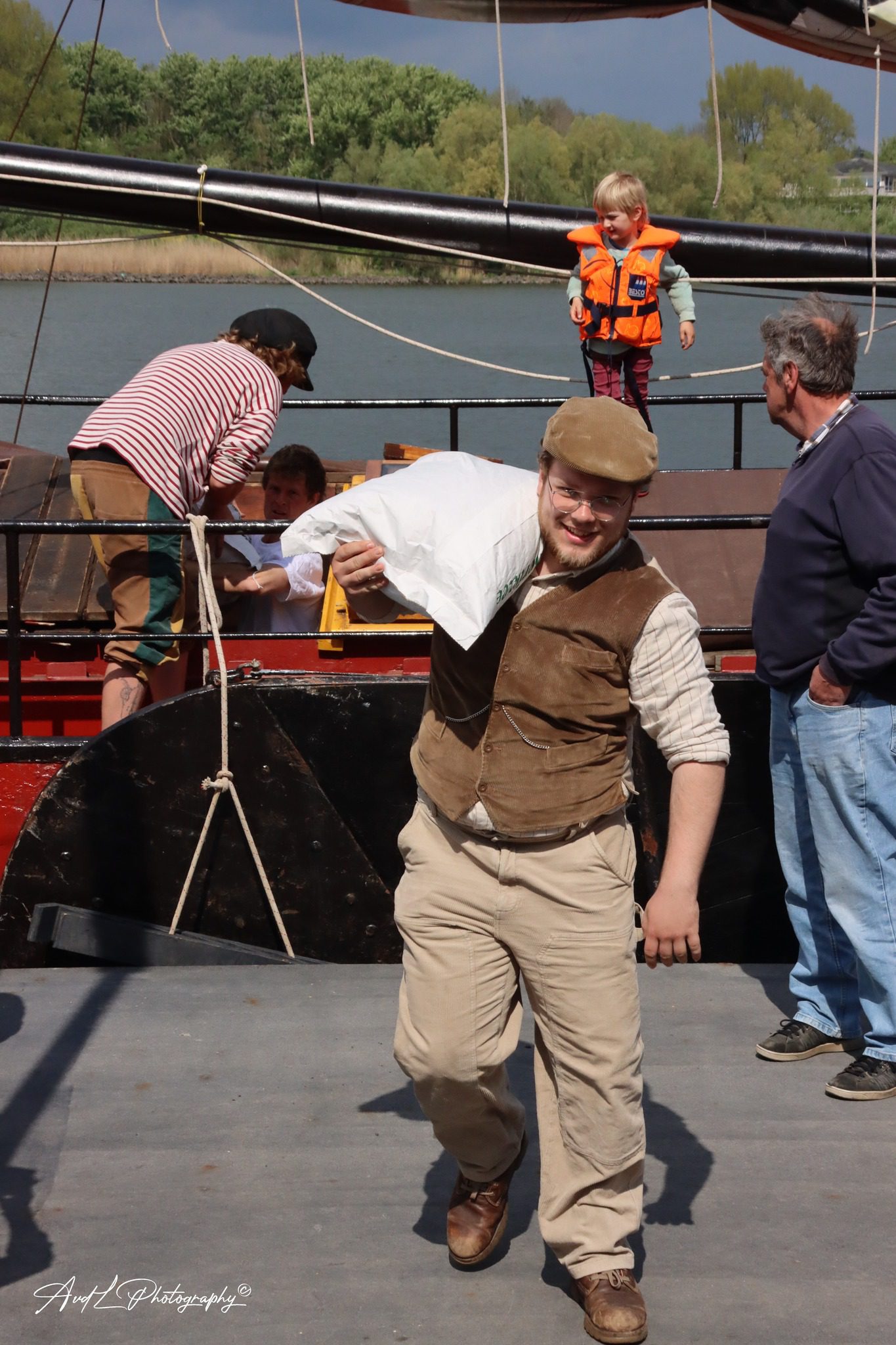 PUTTERSHOEK – Op tweede Paasdag, maandag 21 april, vond bij Café ’t Veerhuys in de haven van Puttershoek opnieuw het jaarlijkse historisch graantransport plaats. Ondanks de trage start – veroorzaakt door de zwakke wind – arriveerde zeilschip De Vrijbuiter uiteindelijk met hulp van sleepboot De Furie.