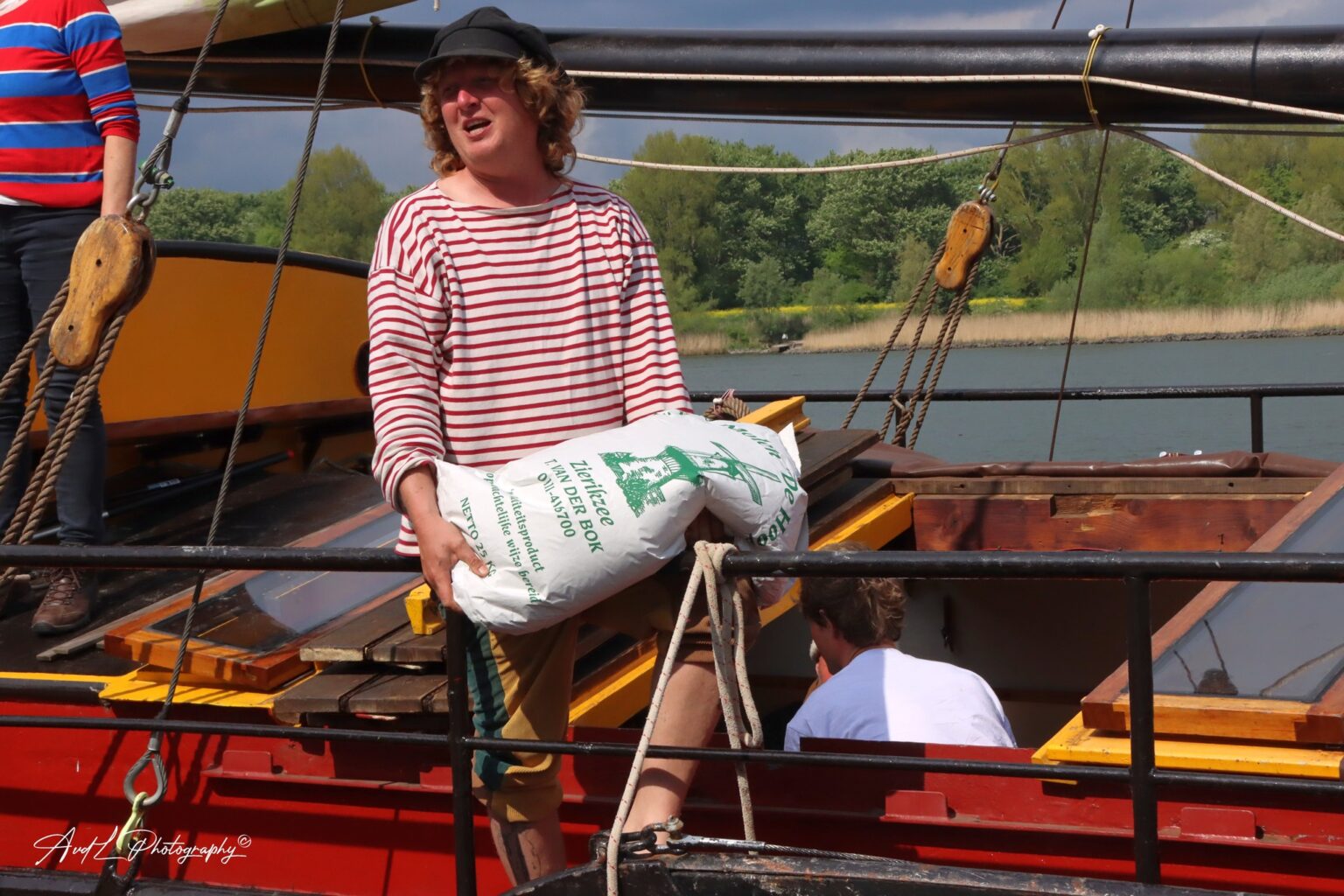 Het schouwspel is een levendige herinnering aan vroegere tijden, toen graantransport per schip en wagen nog de normaalste zaak van de wereld was – in een tijd dat er nog nauwelijks verharde wegen waren.