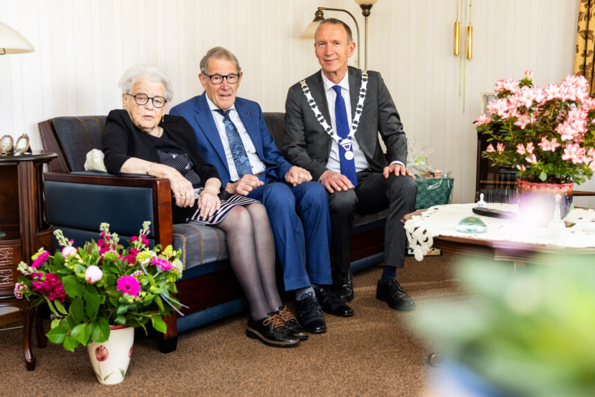 Het was gisteren, 11 mei, 65 jaar geleden dat meneer A. Naaktgeboren (bijna 90) en mevrouw A. Naaktgeboren-Barendregt (87) uit ‘s-Gravendeel in het huwelijksbootje stapten. Burgemeester Erik van Heijningen ging vanochtend langs met een mooie bos bloemen. Hij feliciteerde hen namens het gemeentebestuur met dit briljanten jubileum.