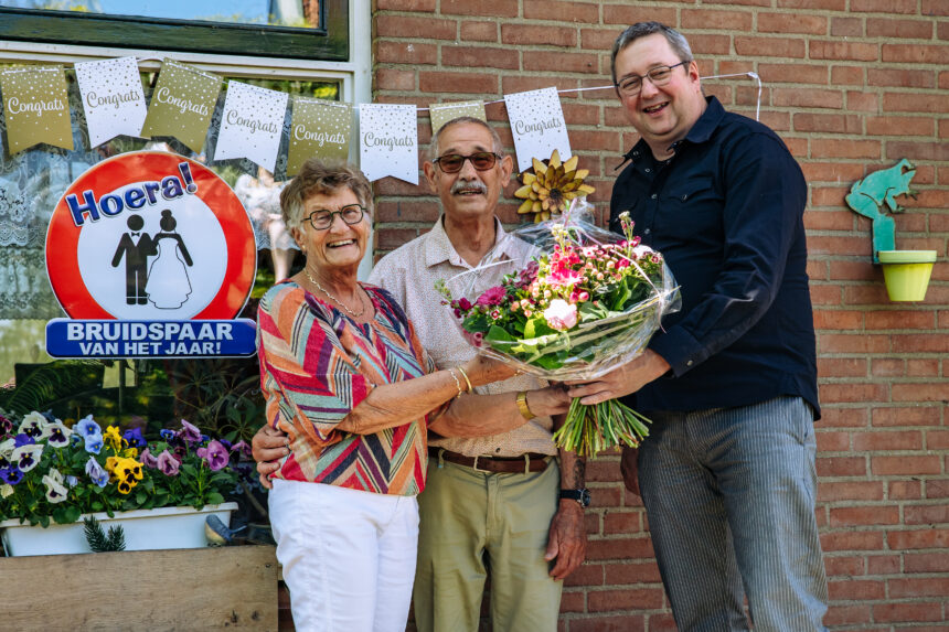 Het is vandaag, op 13 mei, 60 jaar geleden dat meneer A. Gouweloos (85) en mevrouw L.M. Gouweloos-Goudswaard (82) uit Strijen in het huwelijksbootje stapten. Wethouder René Peters ging vanmiddag langs met een mooie bos bloemen. Hij feliciteerde hen namens het gemeentebestuur met dit diamanten jubileum.