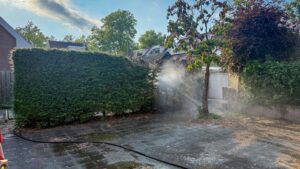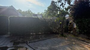 Oud-Beijerland – Zondagavond rond 18.30 uur is brand uitgebroken in een tuin aan de Voorhuis in Oud-Beijerland. Het vuur van een barbecue sloeg vermoedelijk over naar een coniferenhaag, waardoor er korte tijd flinke vlammen ontstonden.