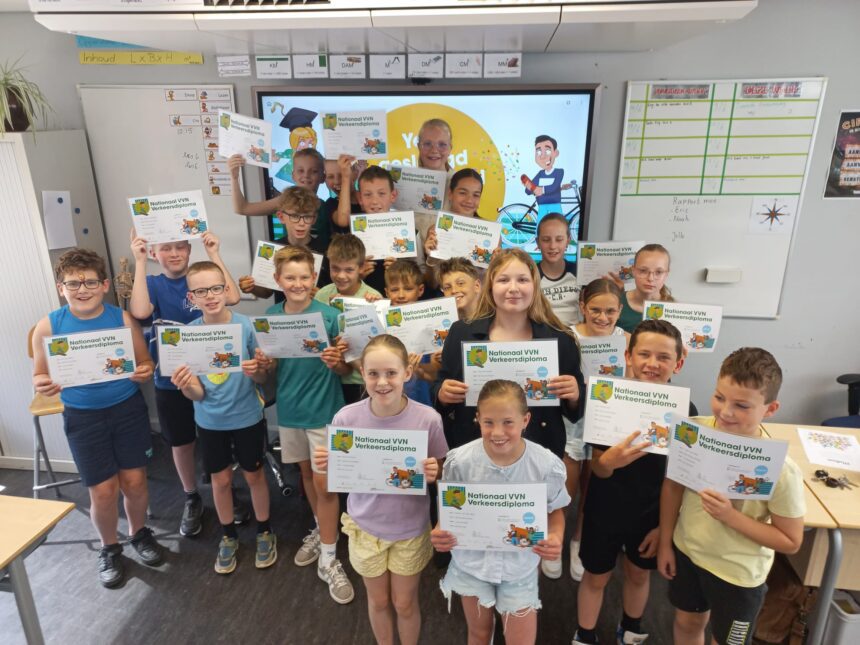 ‘s-Gravendeel – Feest op basisschool De Bouwsteen: alle leerlingen van groep 7 zijn geslaagd! Natuurlijk niet voor hét landelijk examen, maar voor hun verkeersexamen! Na wekenlang oefenen, konden de trotse kinderen deze week hun diploma in ontvangst nemen.