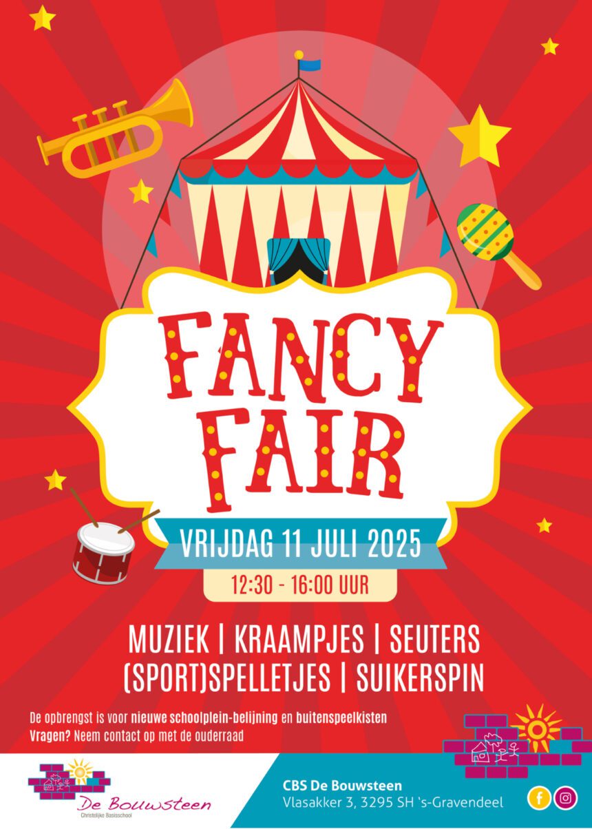 De Fancy Fair is een mooie gelegenheid om samen te komen en het schoolplein van De Bouwsteen een flinke opknapbeurt te geven. Iedereen is van harte welkom!