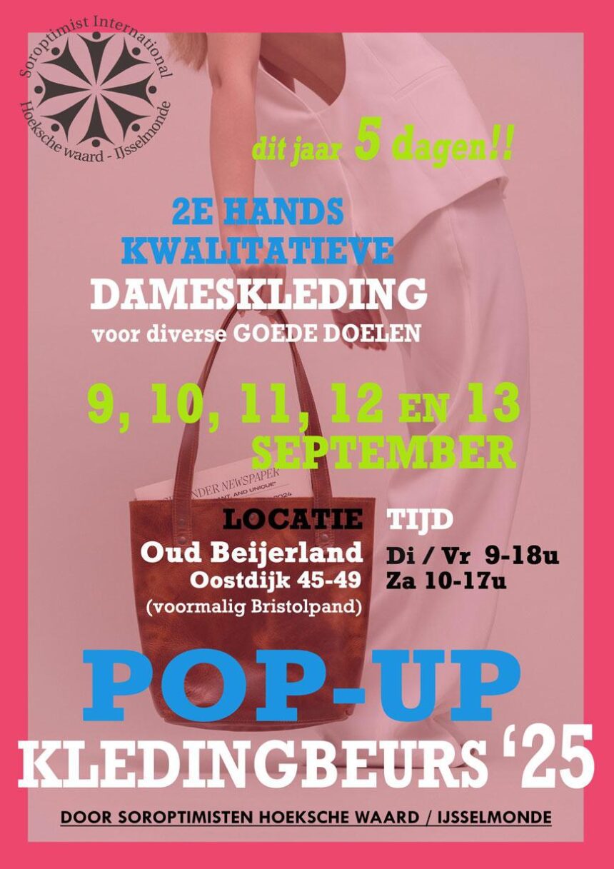 De beurs wordt georganiseerd door de SoroptimistclubHoeksche Waard/IJsselmonde. Soroptimisten zijn vrouwen die zich wereldwijd inzetten om de rechten, positie én het leven van vrouwen en meisjes te verbeteren. Deze pop-up kledingbeurs is één van hun succesvolle jaarlijkse acties om hieraan bij te dragen.