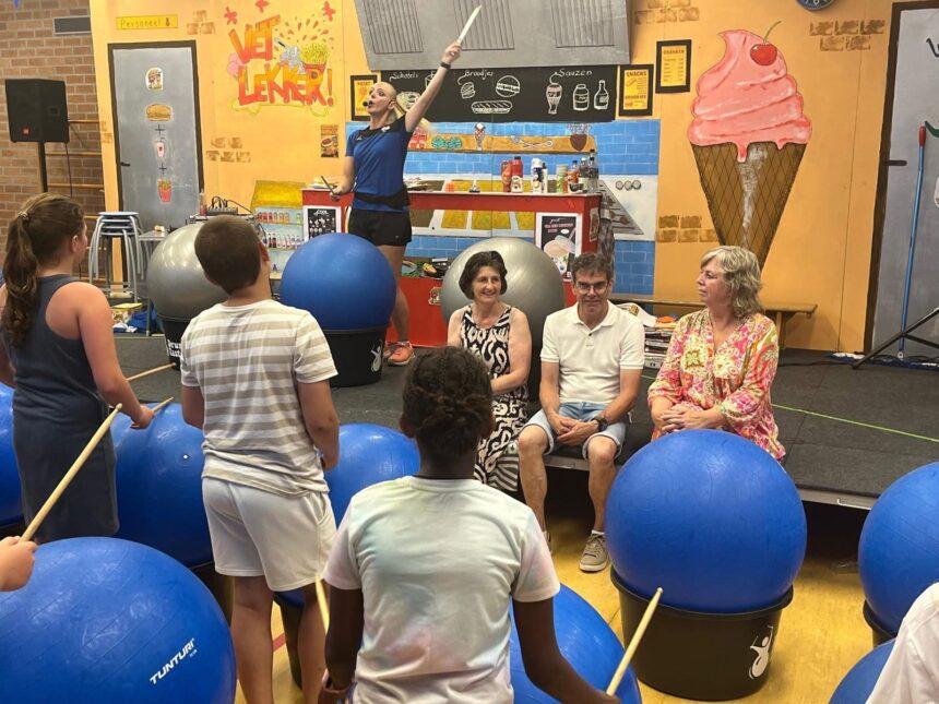 Om deze feestelijke dag kracht bij te zetten, kregen alle groepen een spetterende drumclinic van DrumTastic. De kinderen trommelden vol energie op grote ballen met echte drumstokjes, en ook de meester en juffen lieten hun ritmische talenten zien – meestal zelfs in het juiste ritme! 😄