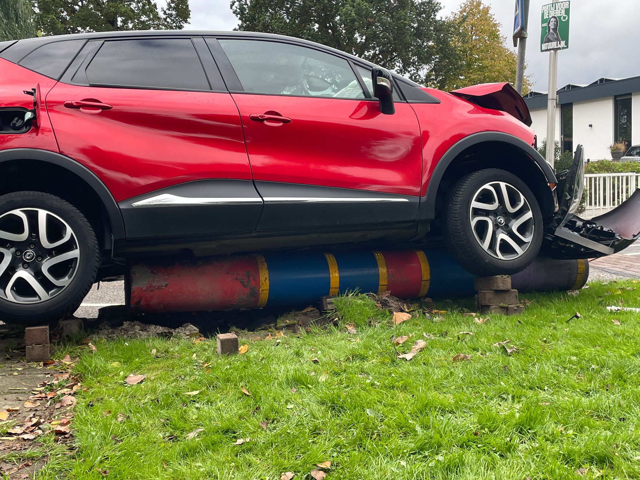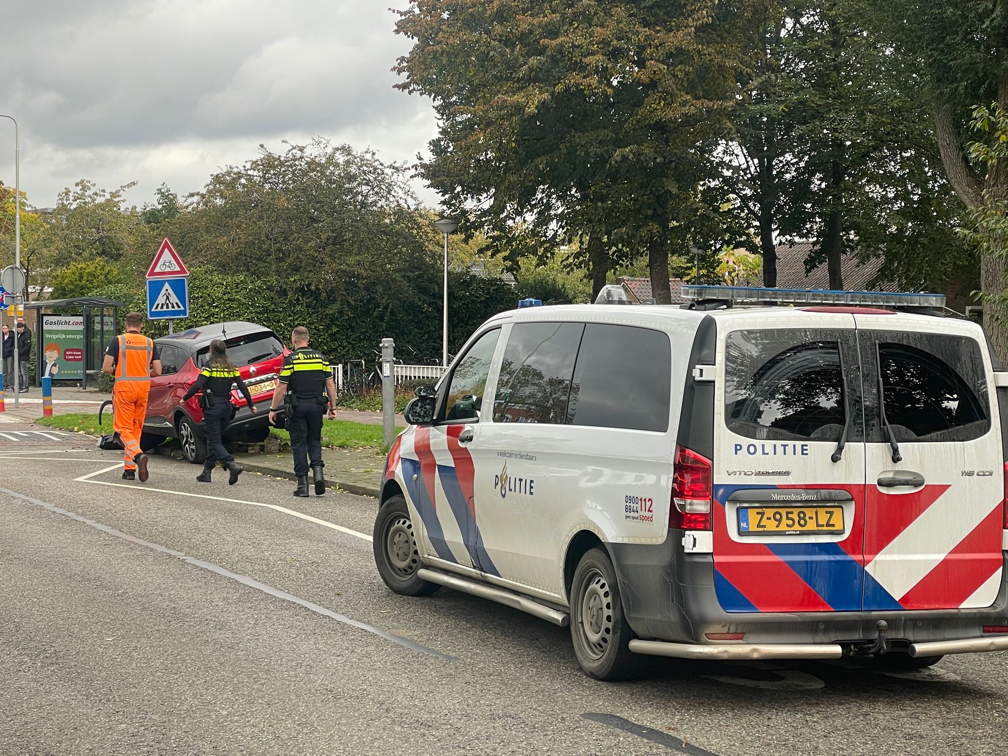 Het ongeluk gebeurde rond 13.30 uur, toen twee auto’s met elkaar in botsing kwamen. Eén van de voertuigen vloog daarbij over een paal en liep zware schade op: de voorkant van de auto is volledig vernield. De politie onderzoekt de toedracht van het ongeval.