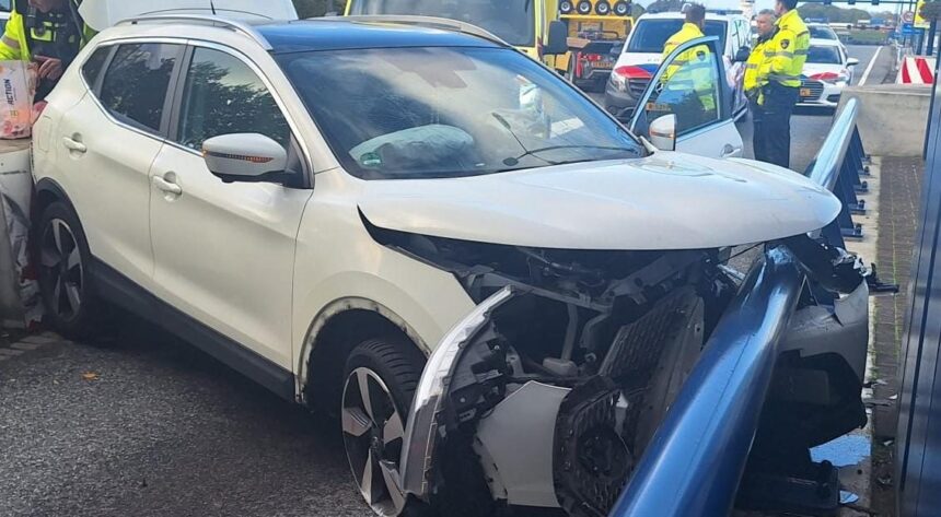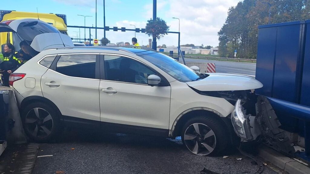 Vrijdagochtend ging het mis bij de tolpoortjes van de Kiltunnel: een auto klapte hard tegen de vangrail.