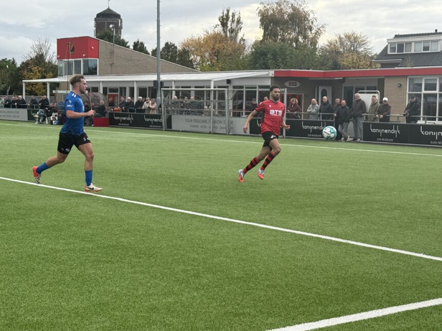 De openingsfase verliep aftastend. Beide ploegen hielden de linies compact en loerden op een fout van de ander. De eerste grote kans was voor de bezoekers: in de 6e minuut moest SSS-doelman Mick van Vliet al vol aan de bak. Met een katachtige redding tikte hij een inzet uit zijn linkerbenedenhoek.