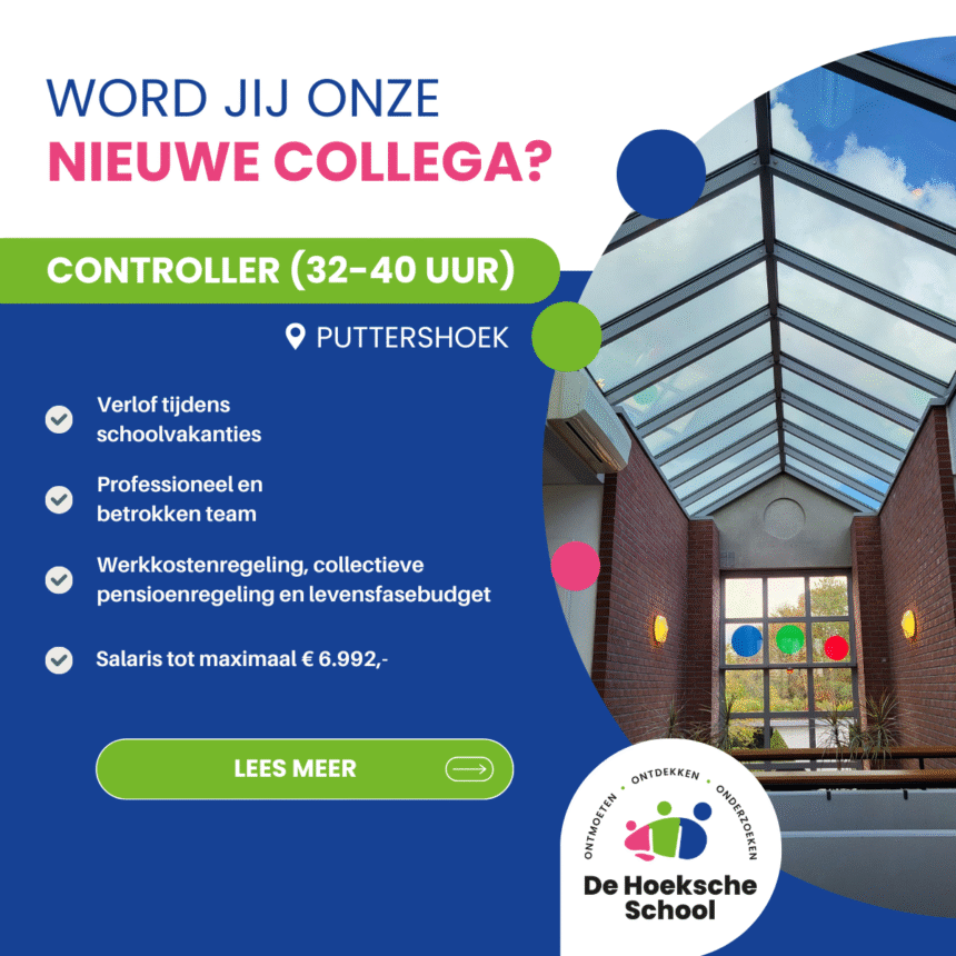 👉 Meer weten of direct solliciteren? Bekijk de vacature via de website: Controller (32-36 uur) bestuurskantoor Puttershoek – De Hoeksche School
