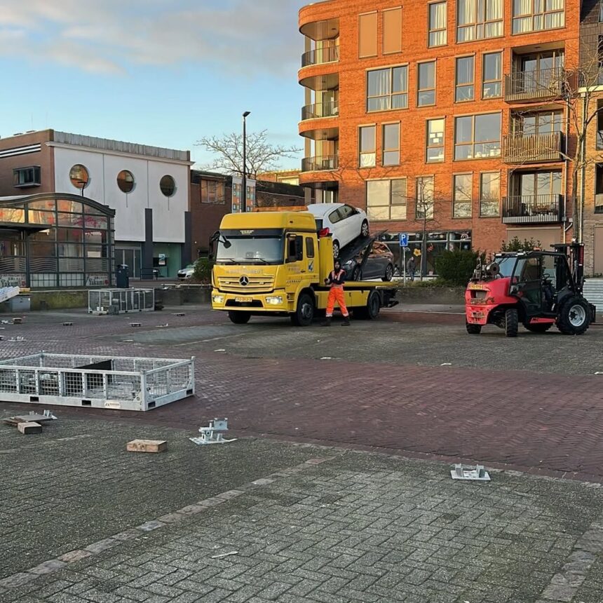 Tussen alle vaste tradities rond de jaarwisseling zou je het bijna vergeten, maar ook dit is inmiddels een terugkerende gewoonte: het leegruimen van het Vierwiekenplein in Oud-Beijerland voor de opbouw van de nieuwjaarsfeesttent.