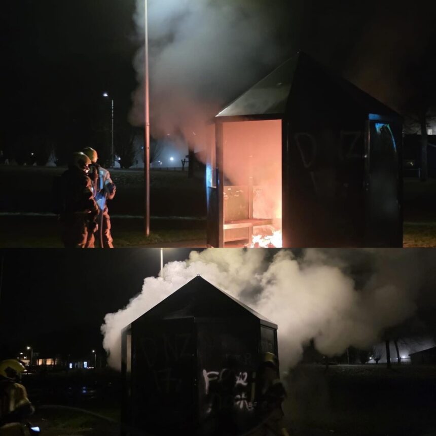 Lang kon de ploeg echter niet blijven zitten. Om 21.42 uur volgde een tweede melding, ditmaal aan de Kleine Loo in Strijen. In een speeltuin was met benzine brand gesticht. Omwonenden wisten het vuur al te doven met emmers water. De brandweer heeft vervolgens een controle uitgevoerd op eventuele hotspots. Nadat bleek dat er geen verdere risico’s waren, kon ook deze inzet worden afgerond en keerde de ploeg terug naar de kazerne.
