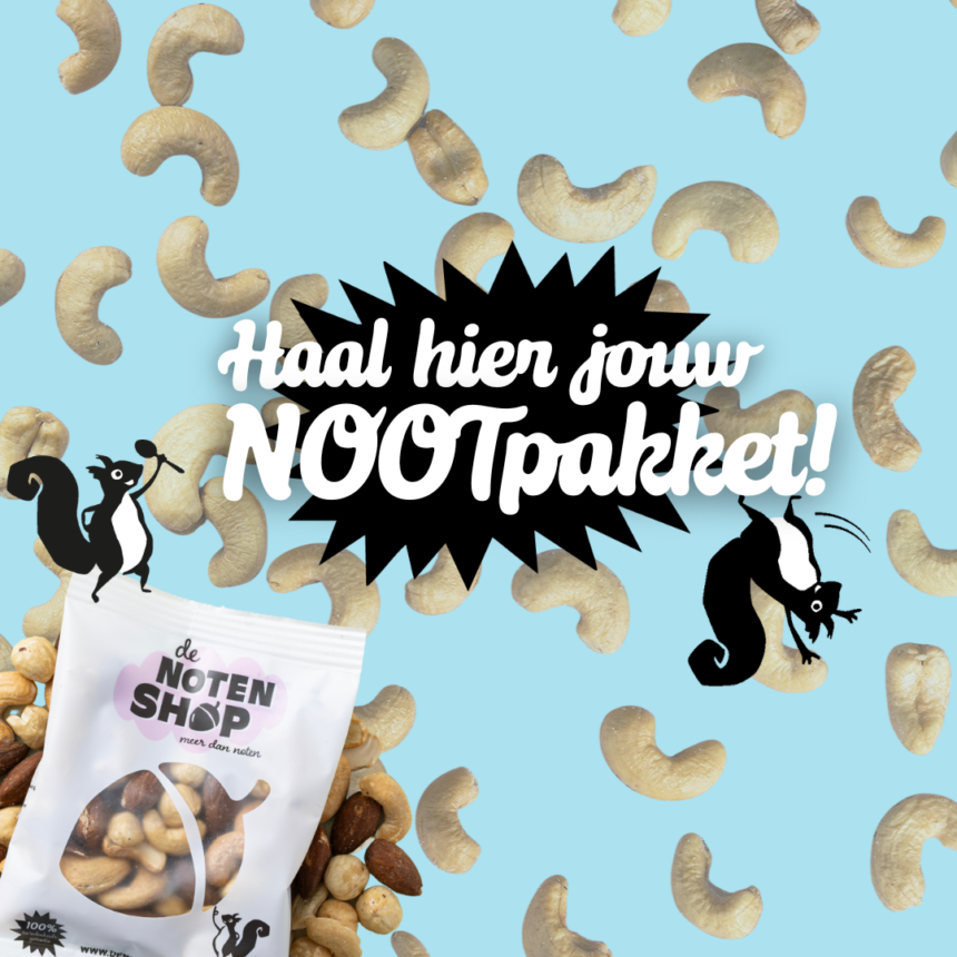 Kom gezellig langs bij de fysieke winkel van De Notenshop voor persoonlijk advies over jouw pakket. Of bestel online op denotenshop.nl.
