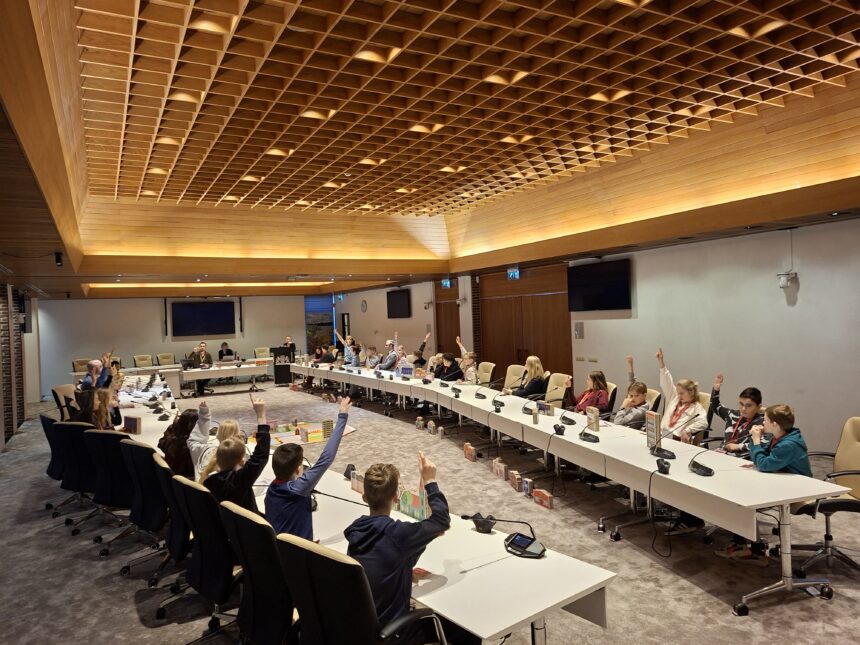 Terwijl de volwassen kandidaten zich warm draaien voor de gemeenteraadsverkiezingen over anderhalve maand, namen de leerlingen van groep 7a van De Bouwsteen uit ’s-Gravendeel afgelopen vrijdag alvast het heft in eigen handen. In de raadzaal van het gemeentehuis van gemeente Hoeksche Waard in Oud-Beijerland speelden zij het educatieve spel Democracity.